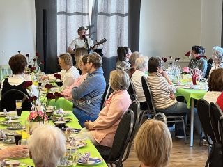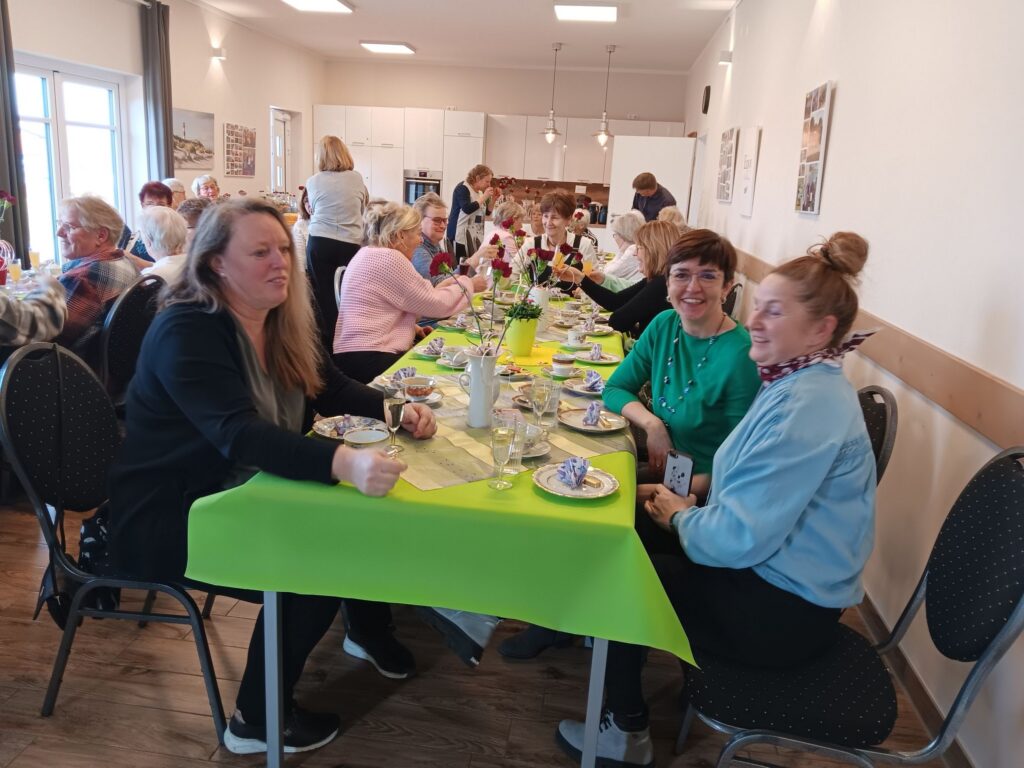 Wir feierten gemeinsam mit ca. 41 Frauen aus Reddelich, Brodhagen und Bad Doberan. Sehr gut wurden wir mit selbstgebackenen Torten, Sekt, Saft und Tees bewirtet und umsorgt. Ein kultureller Beitrag mit Gesang und Gitarre wurde vom Musiker Norbert Sass dargeboten. Das kam sehr gut bei den Frauen an. Wir freuten uns, dass wir uns nach dem langen Winter endlich wieder treffen konnten und so schön schwatzen konnten. Rene Schneider hatte eine wunderbare Rede zum Frauentag gehalten.